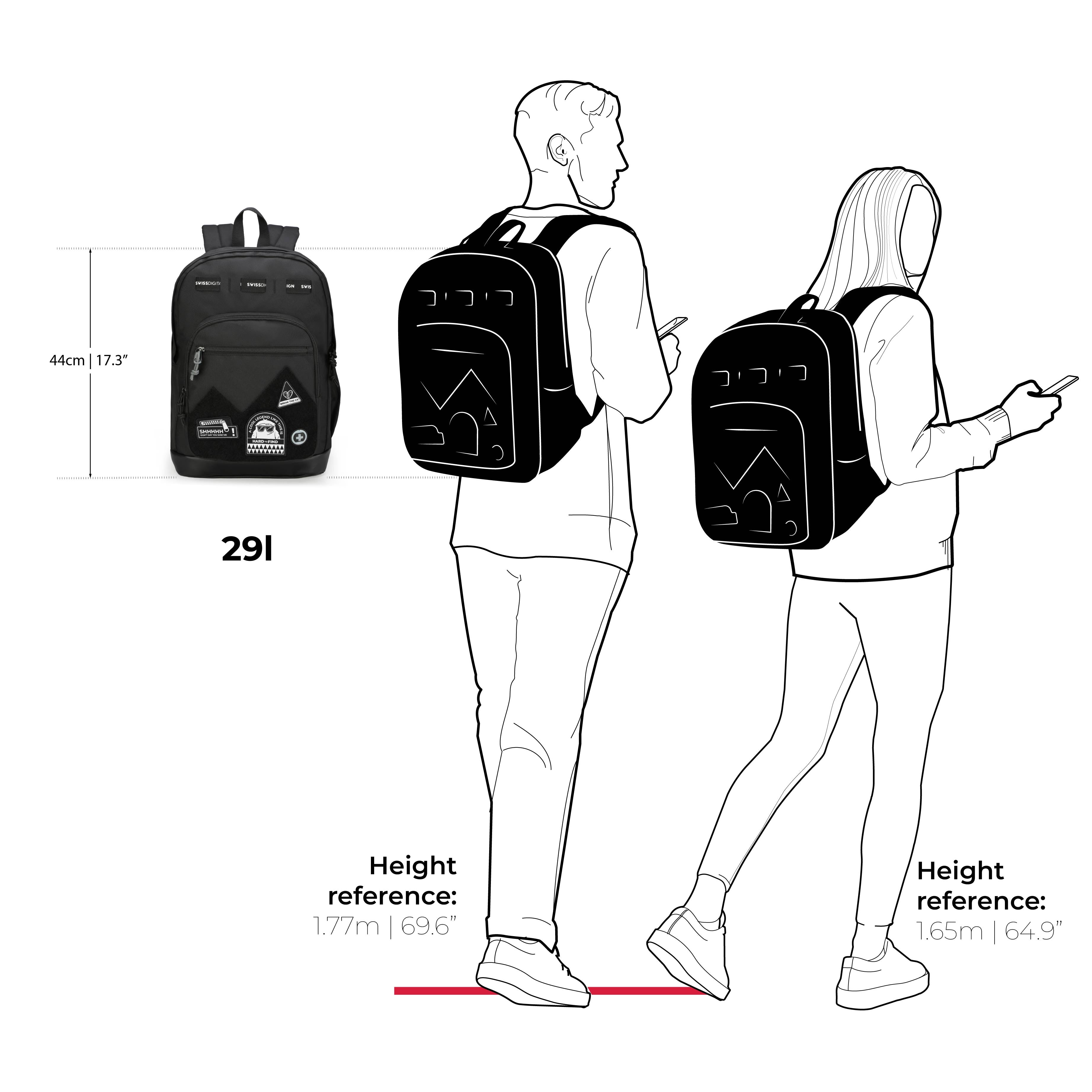 Der BERIKON Black Backpack ist ein stylischer Rucksack. Sein Design macht ihn perfekt für Studenten und Berufstätige. Das ist nicht nur ein Rucksack, sondern deine persönliche Stil-Leinwand! Dank der Klettverschluss-Einsätze kannst du ganz einfach lustige Aufnäher anbringen, entfernen oder austauschen, je nach Laune, Interessen oder Outfit.